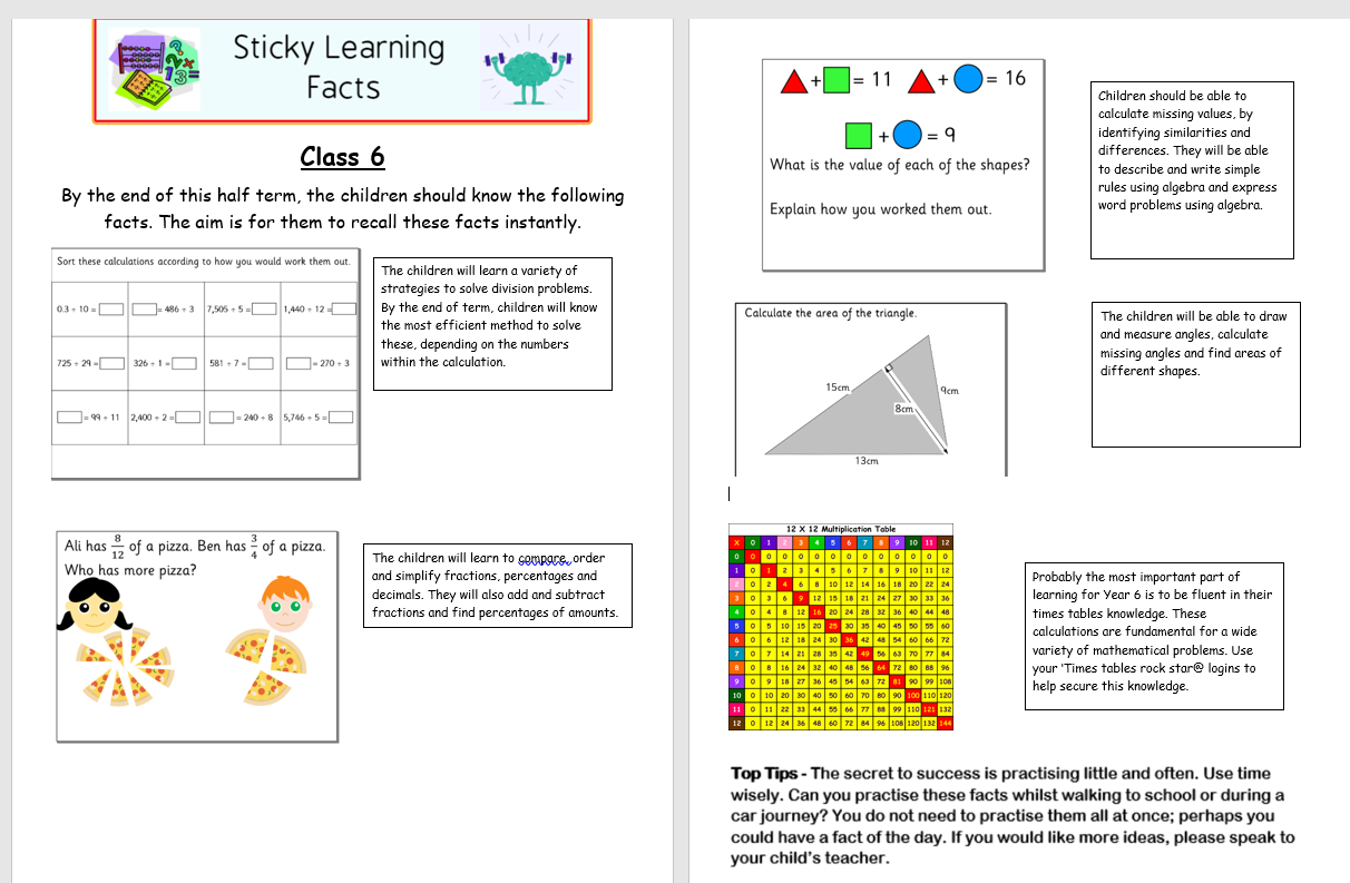 Maths Sticky Learning