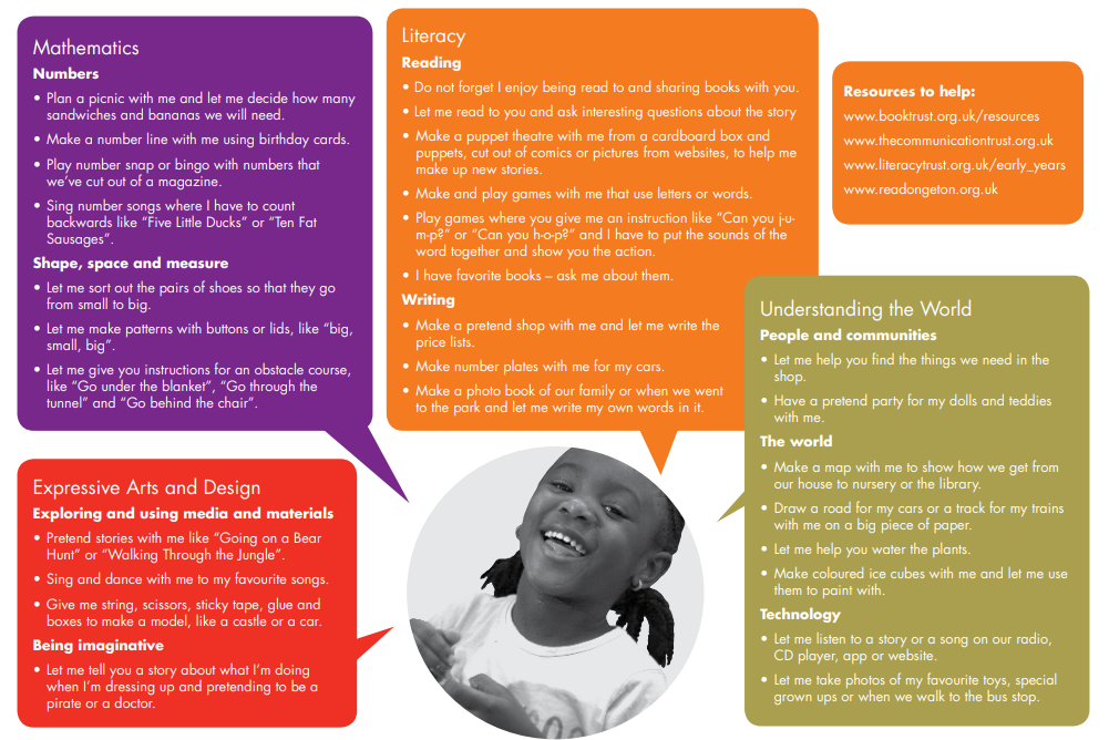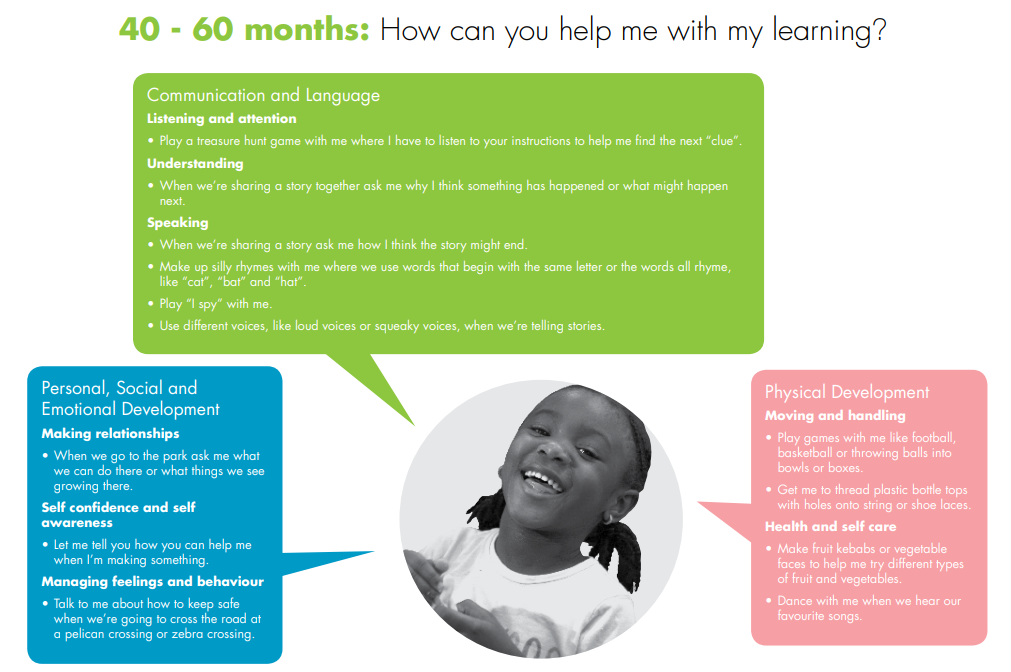 More information about your child's EYFS learning and what is expected, can be found in What to expect, when? this document supports parents in understanding EYFS learning.
