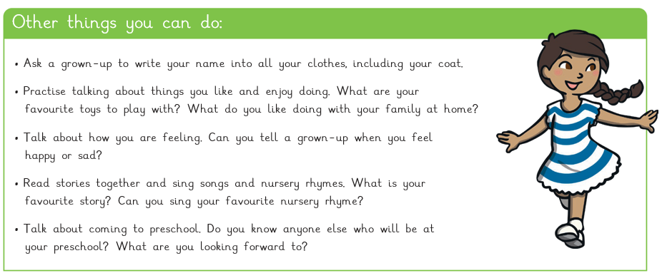 Helping your child at home, here are some things you can do to make sure your child is ready for Preschool...